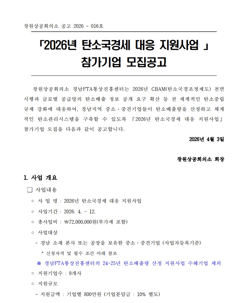 | ‒ | 2026년 탄소국경세 대응 지원사업 참여기업 모집공고 |