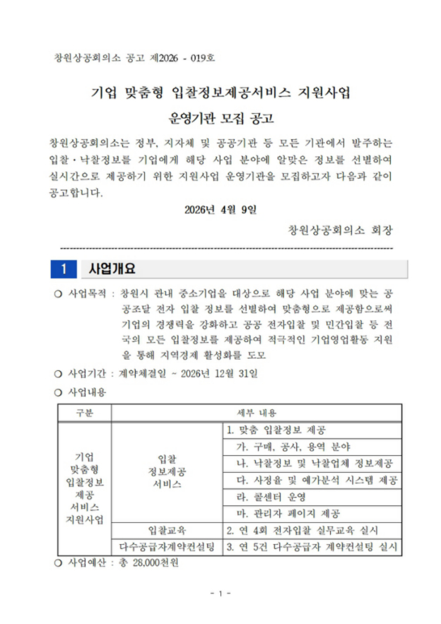 | ‒ | 2026년 기업 맞춤형 입찰정보제공서비스 지원사업 운영기관 모집공고 |