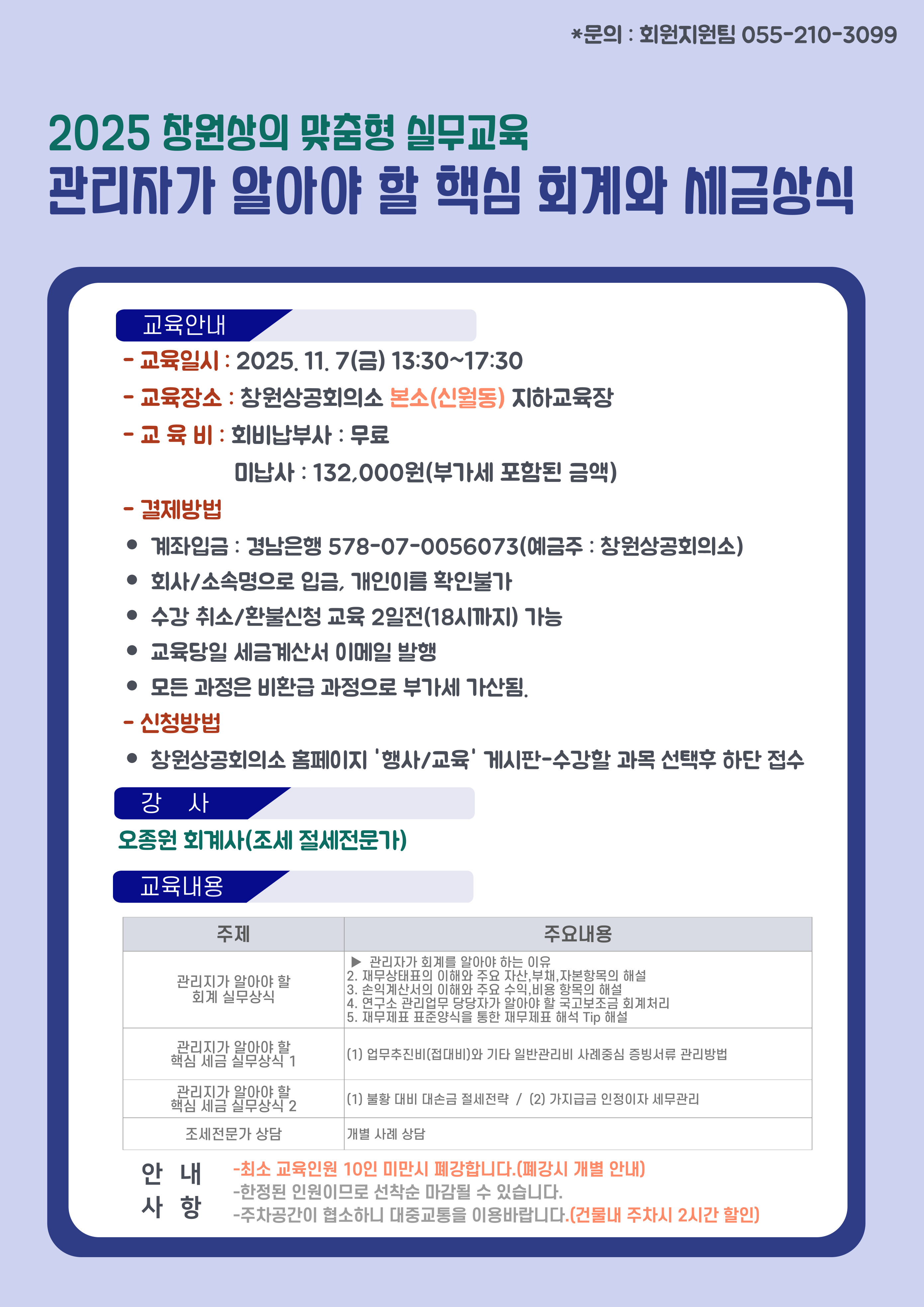 ‒ | [11/7(금) 실무교육] 관리자가 알아야 할 핵심 회계와 세금상식 |