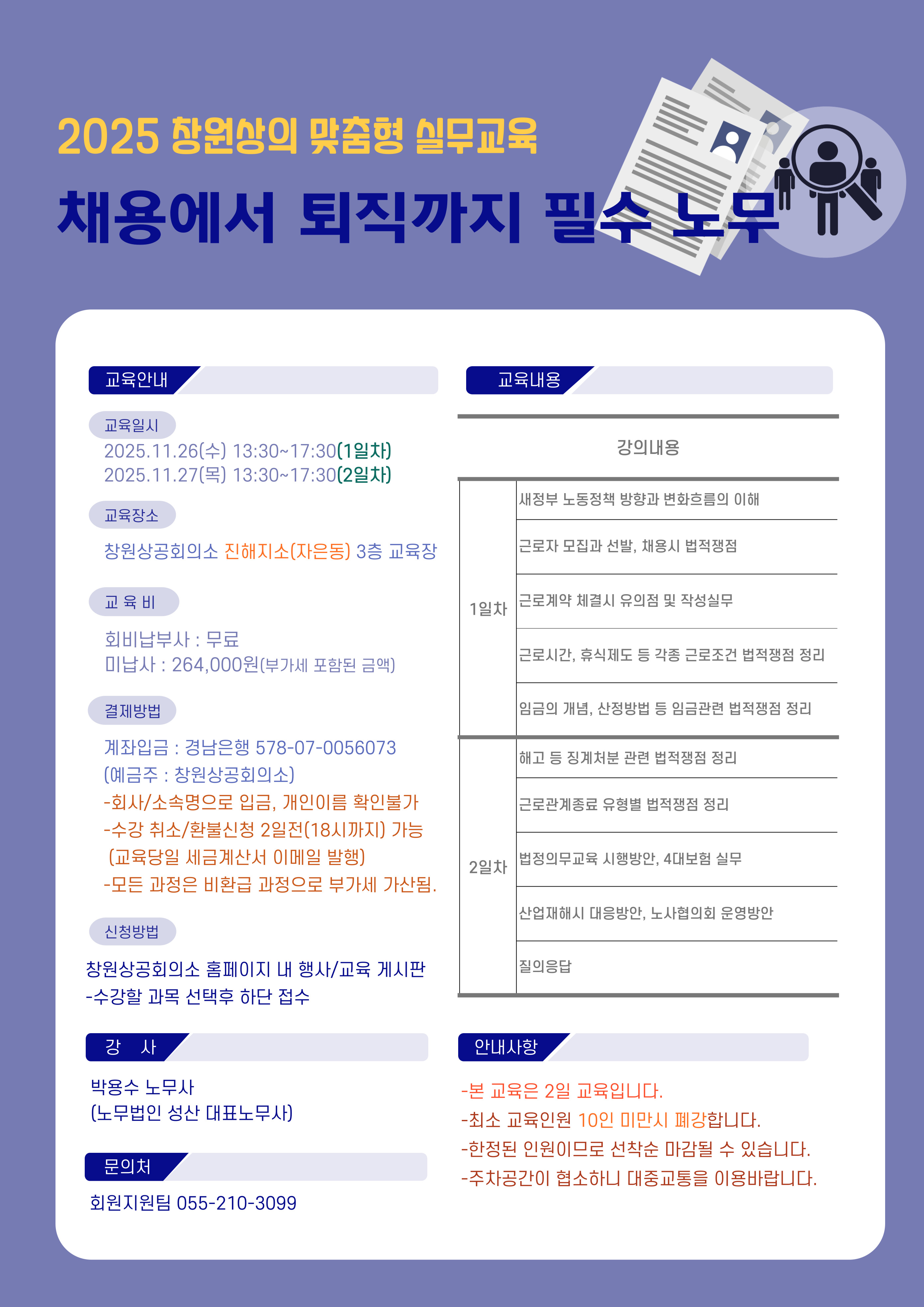 ‒ | [11/26(수)~27(목) 실무교육] 진해지소) 채용에서 퇴직까지 필수 노무 |